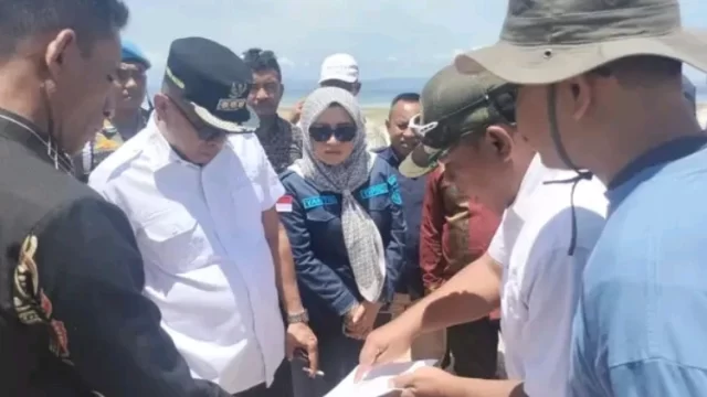 BUTON UTARA – Bupati Buton Utara (Butur), Afirudin Mathara melakukan kunjungan ke lokasi proyek pembangunan Kampung Nelayan Merah Putih (KNMP)