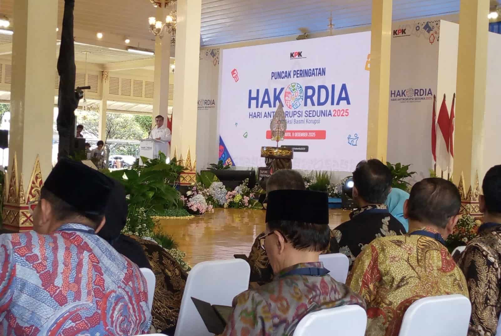 Hal ini disampaikan pada puncak peringatan Hari Anti Korupsi Sedunia (Hakordia) 2025 di Kompleks Bangsal Kepatihan, Yogyakarta, Selasa (9/12/2025).
