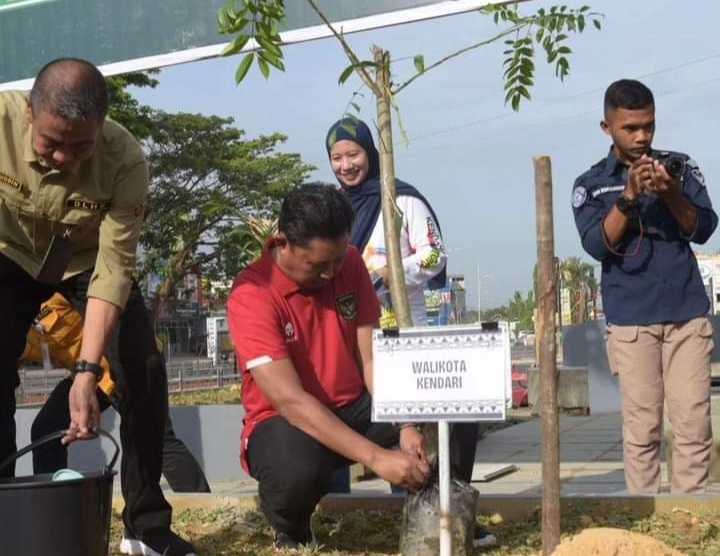 Dalam kesempatan ini, Pj Wali Kota Kendari Asmawa Tosepu menanam pohon Oloho (Spondias Pinata) bersama Danlanud Halu Oleo Kendari menanam pohon Ruruhi (Syzygium polycephalum) dan Ketua DPRD Kota Kendari menanam pohon Singi (Dillenia Serrata).