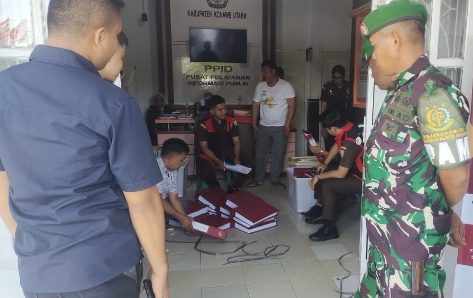 KONAWE UTARA – Kejaksaan Negeri (Kejari) Konawe melakukan penggeledahan di Kantor Komisi Pemilihan Umum (KPU) Konawe Utara (Konut)