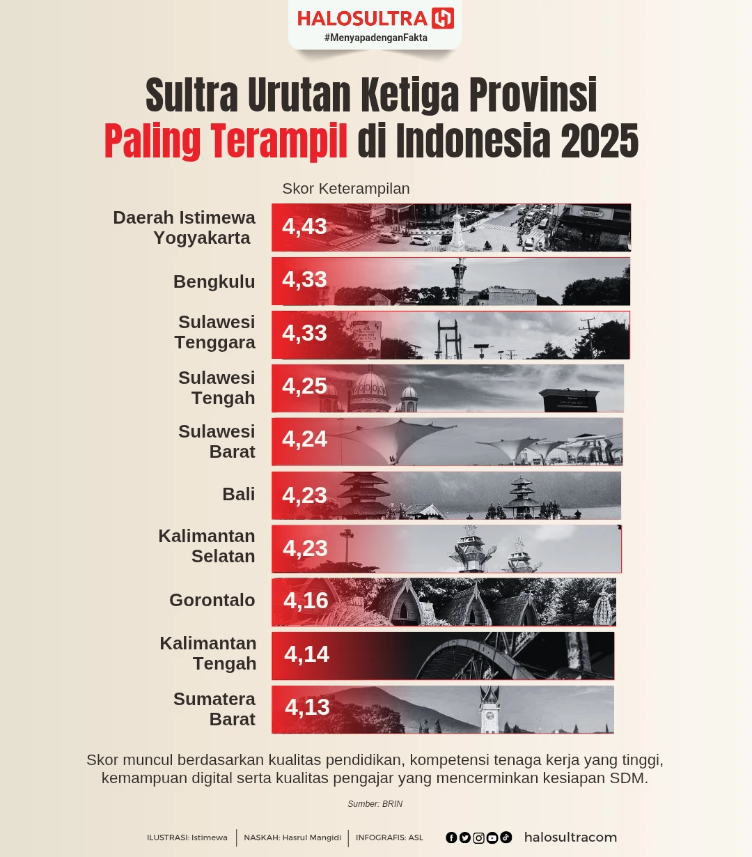 10 Provinsi Paling Terampil di Indonesia 2025, Sultra Masuk 3 Besar