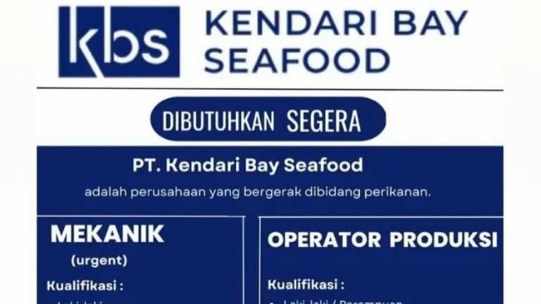 KENDARI – PT Kendari Bay Seafood (KBS) saat ini membutuhkan sumber daya manusia bertalenta untuk berkontribusi bersama mengembangkan usaha.