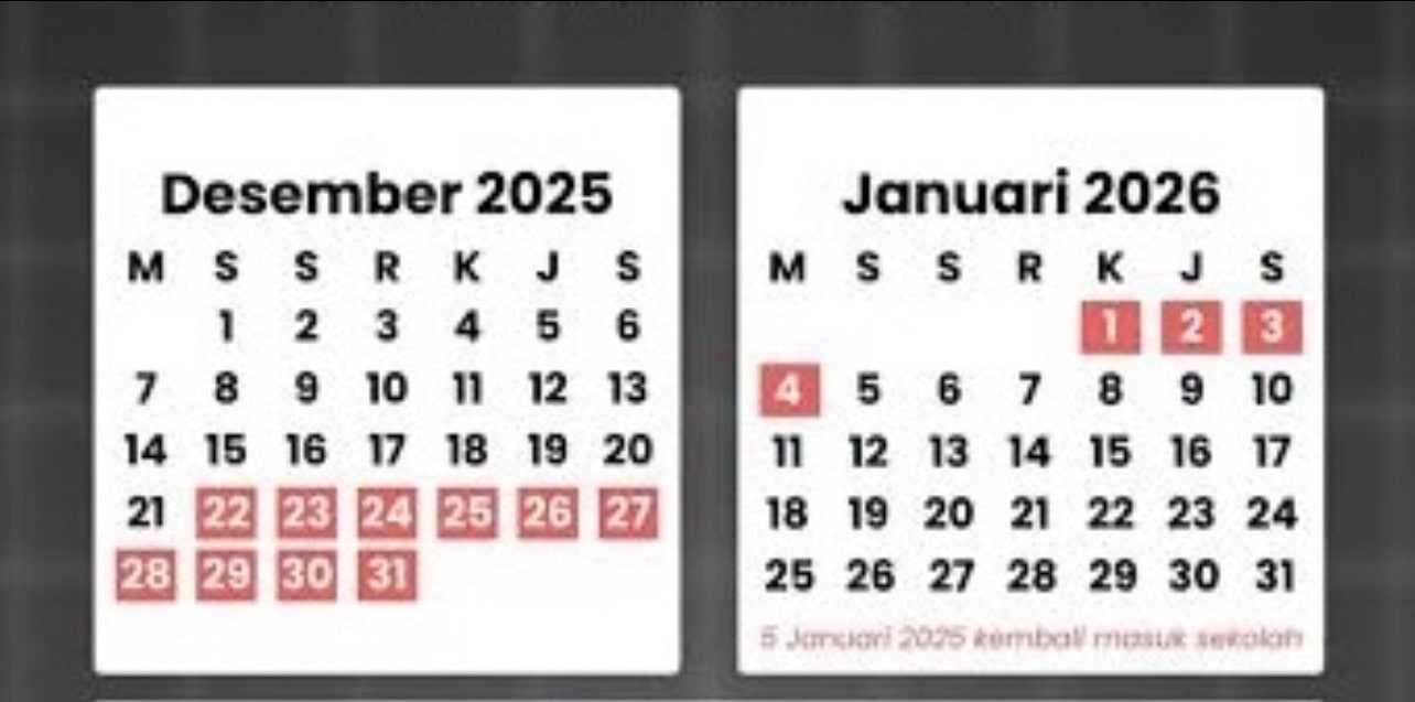 Bagi para siswa, libur Nataru 2025 juga bertepatan dengan libur sekolah semester ganjil 2025-2026.