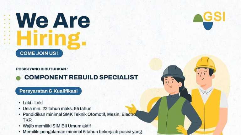 KENDARI – PT Gunung Samudera Internasional (GSI) tengah membuka lowongan kerja (loker) atau rekrutmen untuk posisi Component Rebuild Specialist.