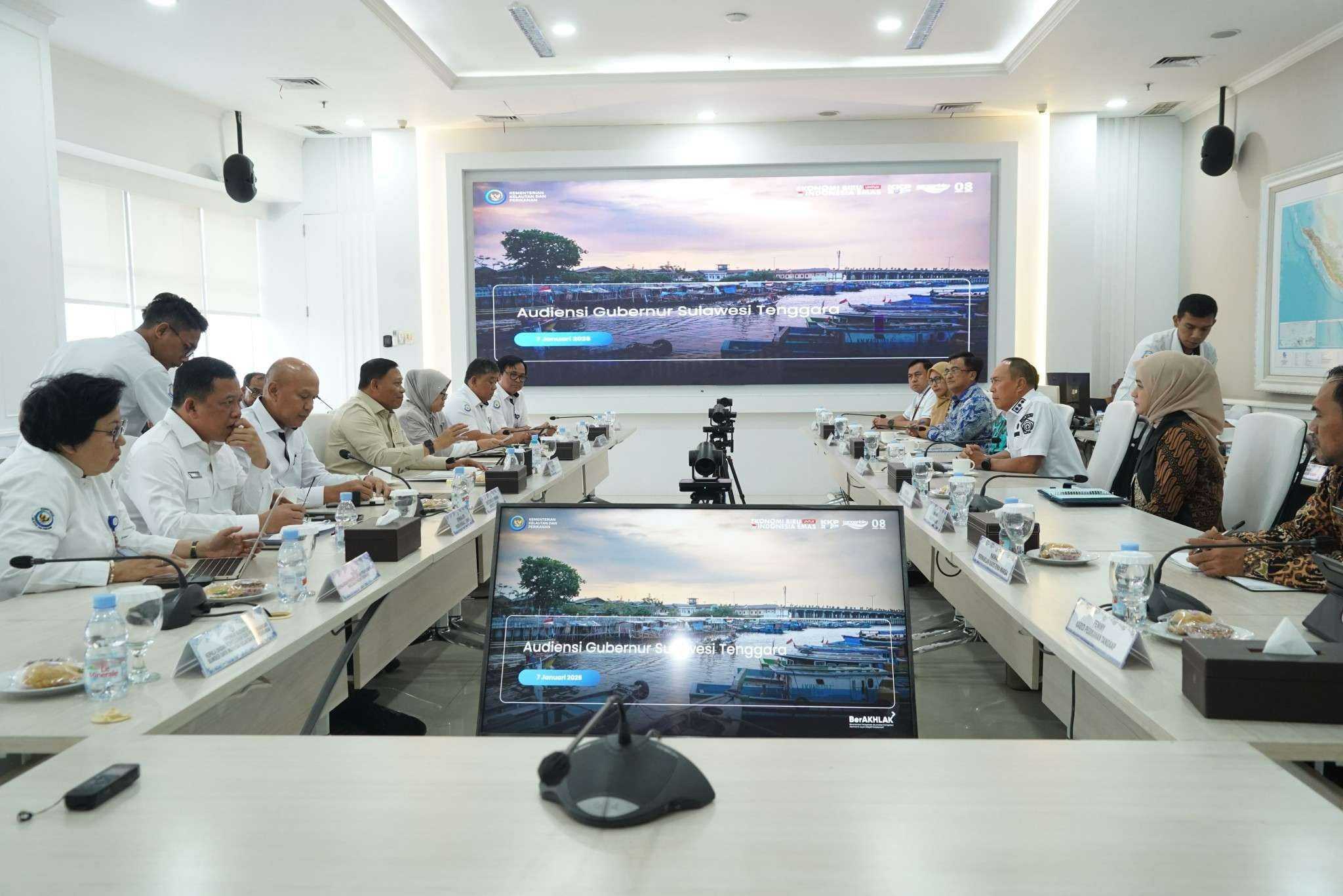 Audiensi tersebut bertujuan untuk mematangkan persiapan peresmian Kampung Nelayan Merah Putih (KNMP) di Desa Sorue Jaya, Konawe.