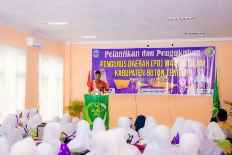 BUTON TENGAH – Pj Bupati Buton Tengah (Buteng), Kostantinus Bukide menghadiri pelantikan dan pengukuhan Pengurus Daerah Wanita Islam (PDWI) Kabupaten Buteng periode 2024-2029 di Aula MAN I Buteng, Sabtu (27/7/2024).