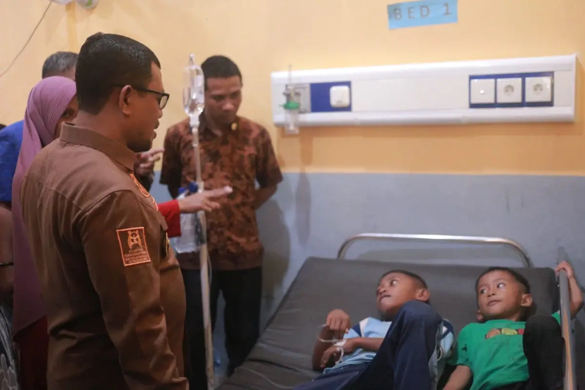 Wakil Bupati Buton, Syarifuddin Safaa, turun langsung memastikan penanganan medis berjalan maksimal terhadap puluhan siswa yang tengah menjalani perawatan di RSUD Buton.