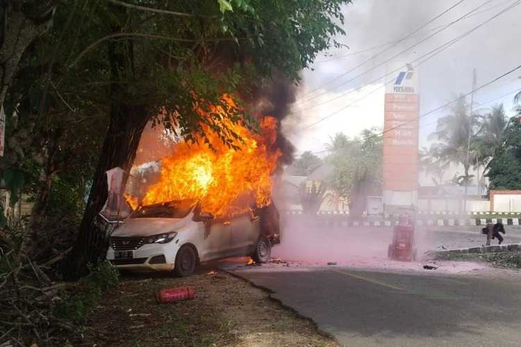 Tepat di depan SPBU Watubangga, mobil tersebut seketika mengalami ledakan kecil disertai kebakaran yang mana sumber titik api berasal dari ruang bagian belakang mobil tersebut.