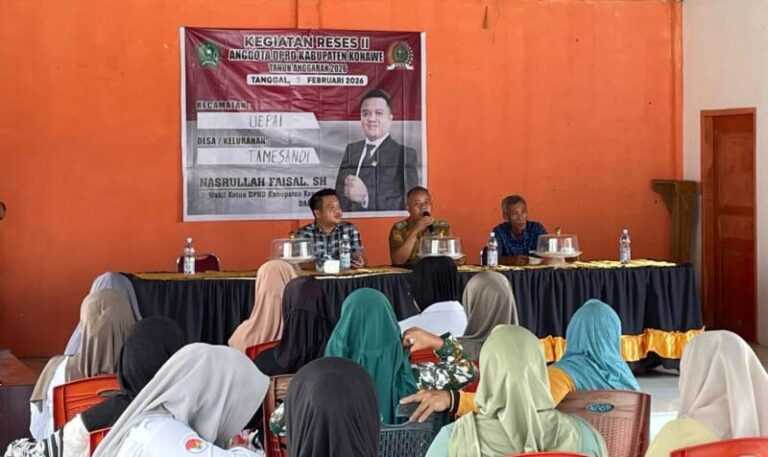 KONAWE – Dewan Perwakilan Rakyat Daerah (DPRD) Konawe melalui Wakil Ketua II Nasrullah Faizal, SH, turun langsung menyerap aspirasi warga dalam agenda reses di Desa Tamesandi, Kecamatan Uepai, Kabupaten Konawe, pada Selasa (10/2/2025).