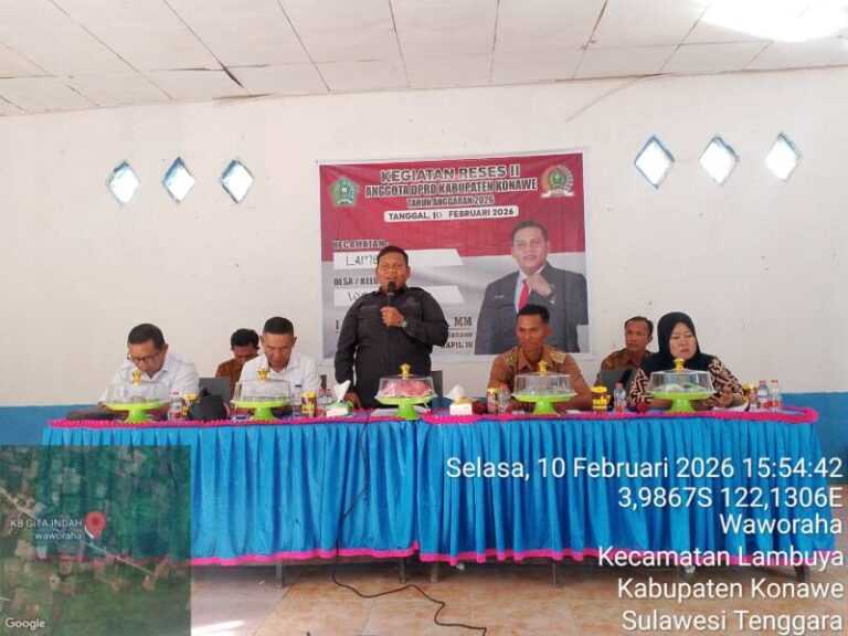 KONAWE – Dewan Perwakilan Rakyat Daerah (DPRD) Konawe kembali menyerap langsung suara rakyat dalam agenda Reses II, kali ini di Desa Waworaha, Kecamatan Lambuya, pada Selasa (10/2/2026). Warga secara tegas mengusulkan peningkatan infrastruktur jalan desa yang dinilai menjadi urat nadi aktivitas ekonomi dan mobilitas harian.