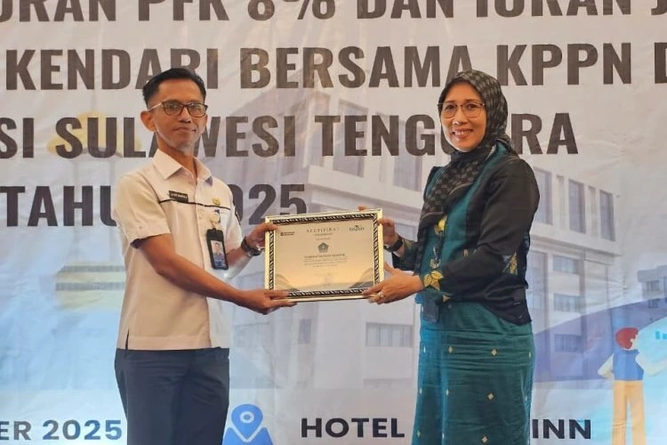 Penghargaan tersebut diserahkan langsung oleh Branch Manager PT Taspen Kendari, Ilmiah Rezki, kepada Plt Kepala BPKAD Kota Kendari, Laode Maarfin Nurjan, dalam acara Rekonsiliasi IWP, JKK, dan JKM Catur Wulan II Tahun 2025 yang digelar di Hotel Plaza Inn Kendari, Rabu (12/11/2025).
