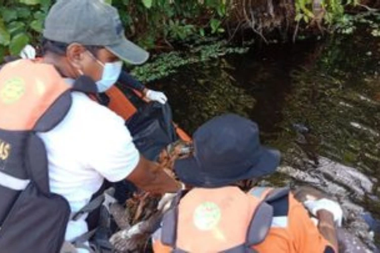 Keluarga kemudian melakukan pencarian dan hanya menemukan sepasang sandal korban yang terpisah, satu di bibir sungai dan satu lagi di permukaan sungai yang airnya keruh.