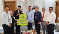 KENDARI – Wakil Wali Kota Kendari, Sudirman, menerima bantuan 350 rompi parkir dari Bank