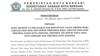 KENDARI – Pemerintah Kota (Pemkot) Kendari melalui Sekretariat Daerah (Setda) resmi mengumumkan hasil seleksi uji kelayakan dan kepatutan (UKK) Calon…
