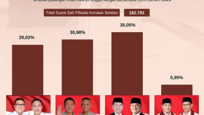 KONAWE SELATAN – Pasangan calon Bupati dan Wakil Bupati nomor urut 3, Irham Kalenggo dan Wahyu Ade Pratama Imran meraih…