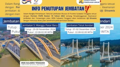 KENDARI – Balai Pelaksanaan Jalan Nasional (BPJN) Sulawesi Tenggara (Sultra) Direktorat Jenderal Bina Marga Kementerian PUPR berencana melakukan uji dinamis…