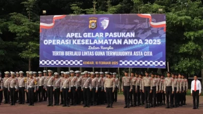 KENDARI – Polda Sulawesi Tenggara (Sultra) menggelar apel pasukan dalam rangka Operasi Keselamatan Anoa 2025, Senin (10/2/2025). Apel yang dipimpin…