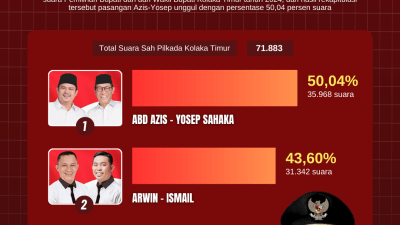 KOLAKA TIMUR – Pasangan calon Bupati dan Wakil Bupati nomor urut 1, Abd Azis-Yosep Sahaka meraih suara terbanyak berdasarkan hasil…